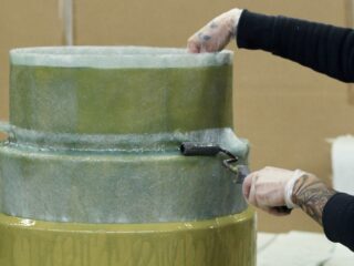 Výroba laminátových dílů z polyesterové pryskyřice metodou ruční laminace, laminace stříkáním a profesionální RTM metodou