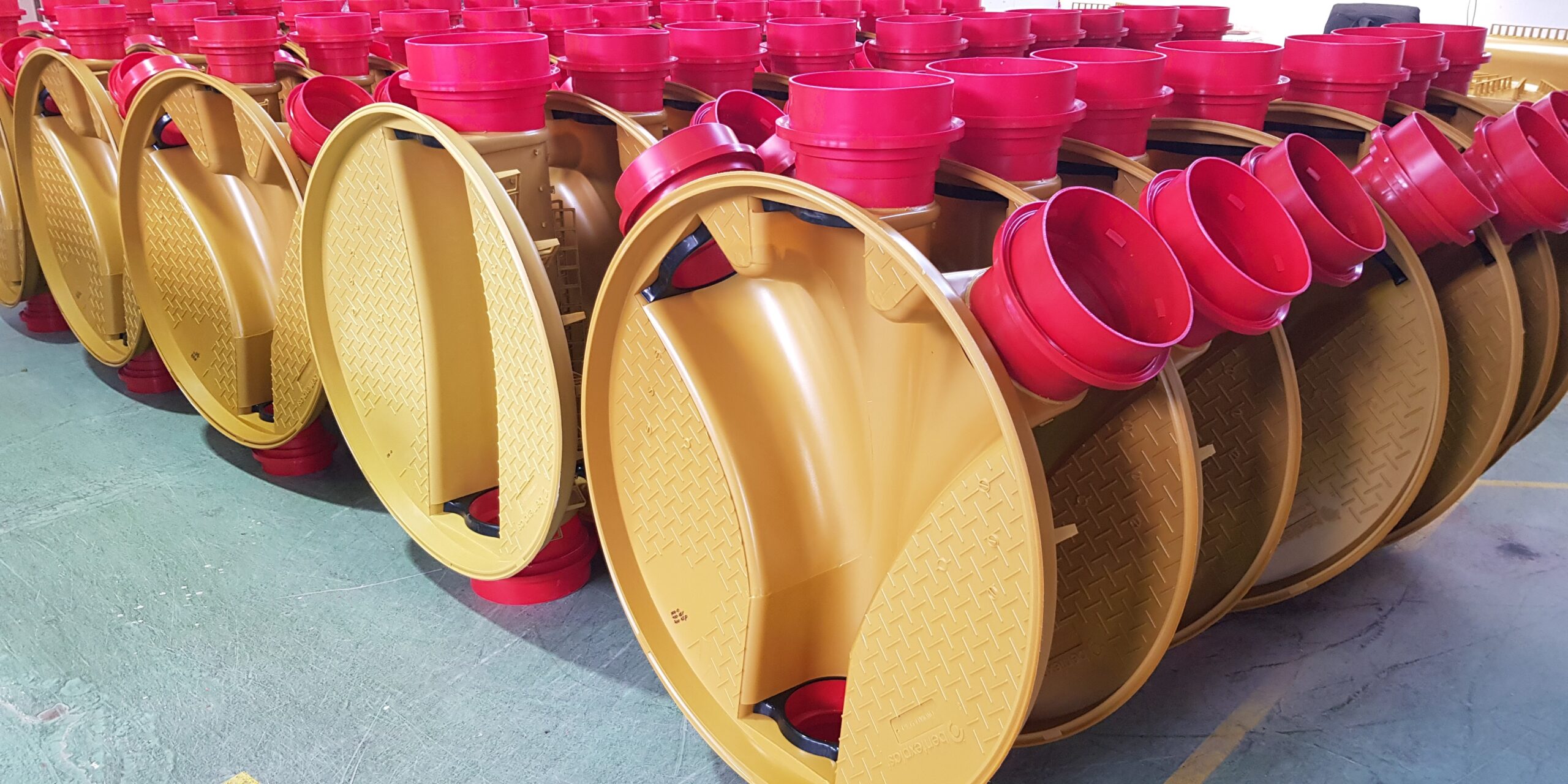 Schachtböden, Muffen und andere Kunststoff- (PP, PE) und GFK-Produkte